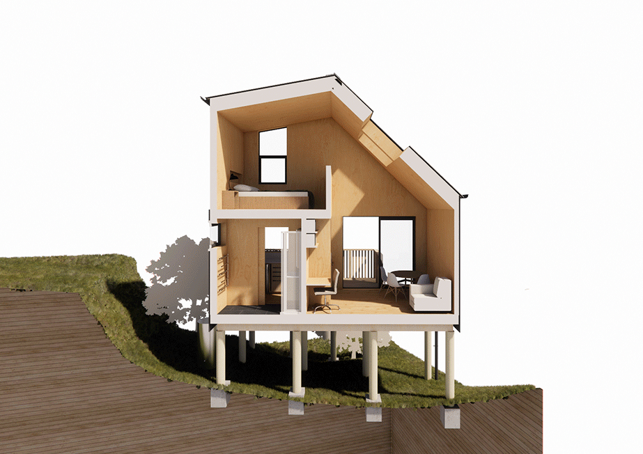 Built by Boon Construction, with all materials carried in by hand, the project is a celebration of craft, resilience, and smarter ways of living. It’s a home that sits lightly on the land while offering a thoughtful approach to compact living.