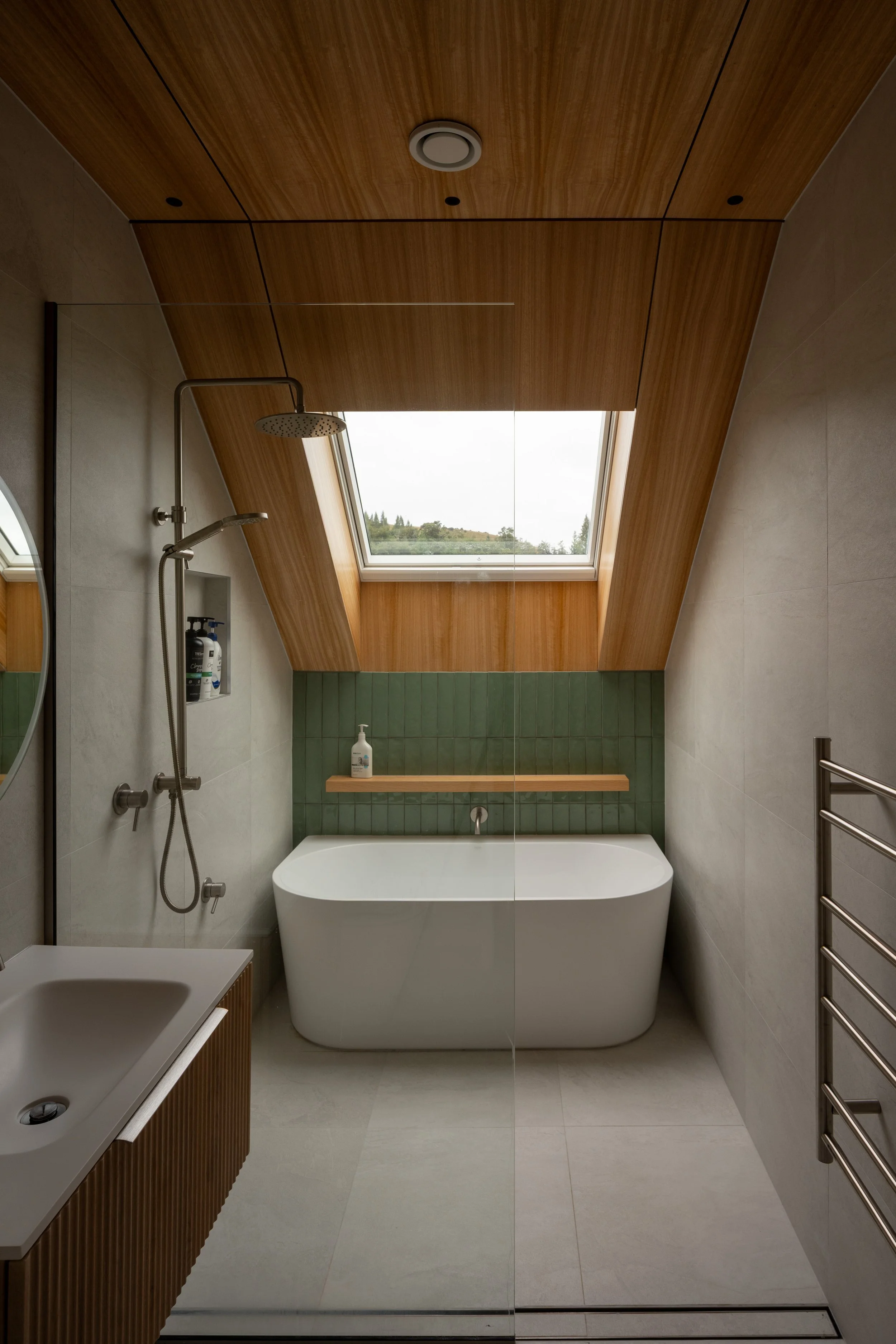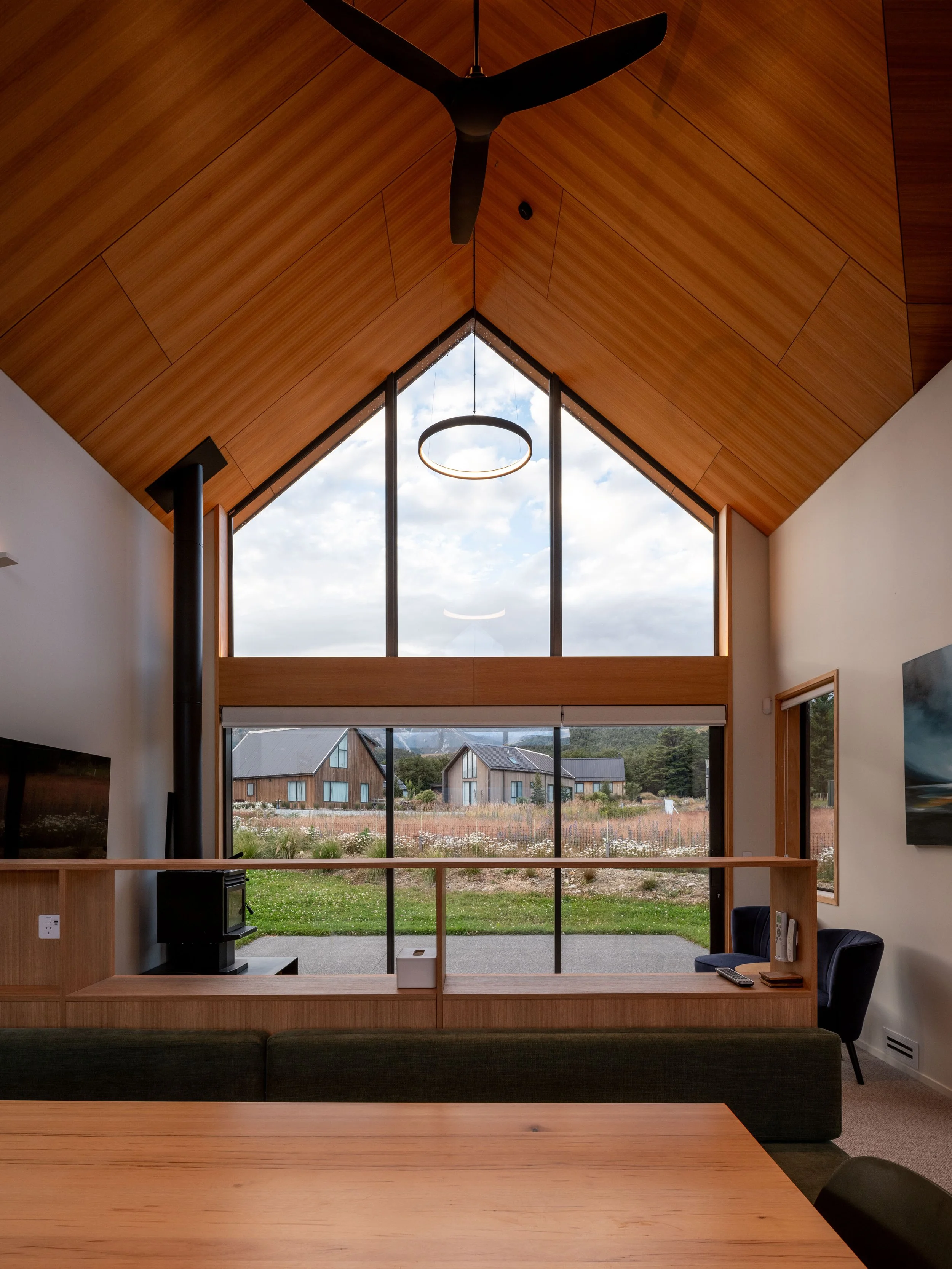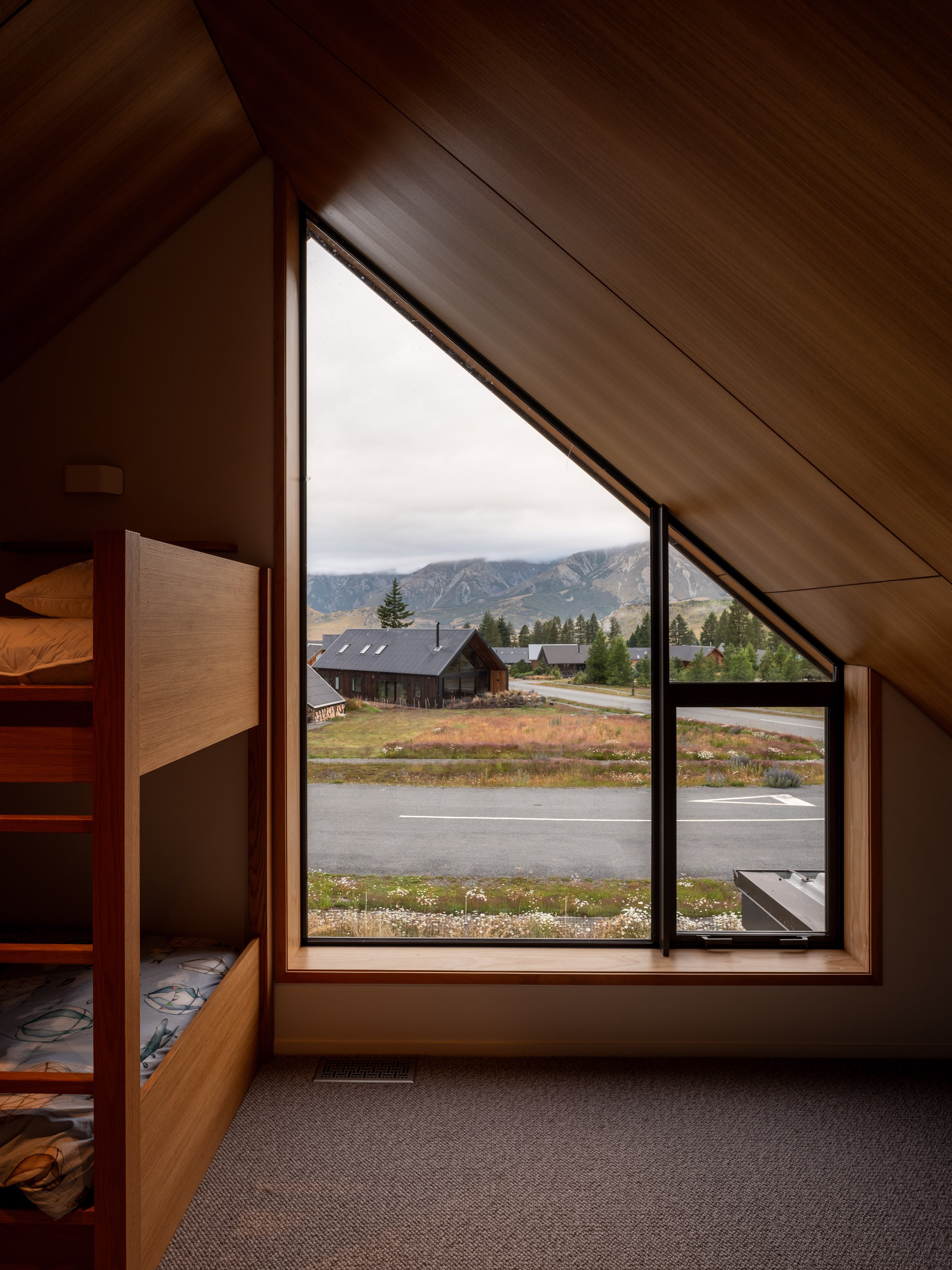 Material choices balance resilience and warmth. Sandy toned hardwood cladding references the Canterbury plains, while softer grey hues respond to limestone outcrops and the darker Craigieburn forest. Internally, timber linings create a sense of intimacy against the vastness of the landscape. Built primarily in timber and carefully insulated, the home pursues robust environmental performance within a disciplined budget.