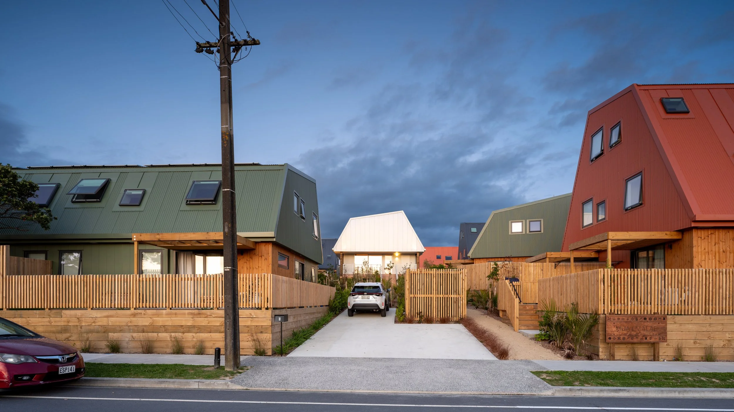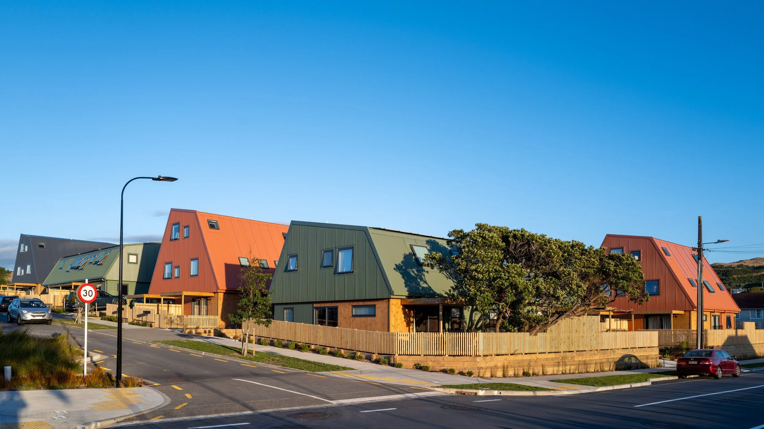 Located in eastern Porirua within an established suburban context, Our Whare Our Fale is founded on a life-partnership with mana whenua, Ngāti Toa Rangatira. A perpetual land lease removes land cost from the equation and supports long-term affordability through shared equity. Planning constraints around density, height and vehicular access required close cooperation with Porirua City Council, balancing affordability, performance and cultural authenticity while meeting compliance.