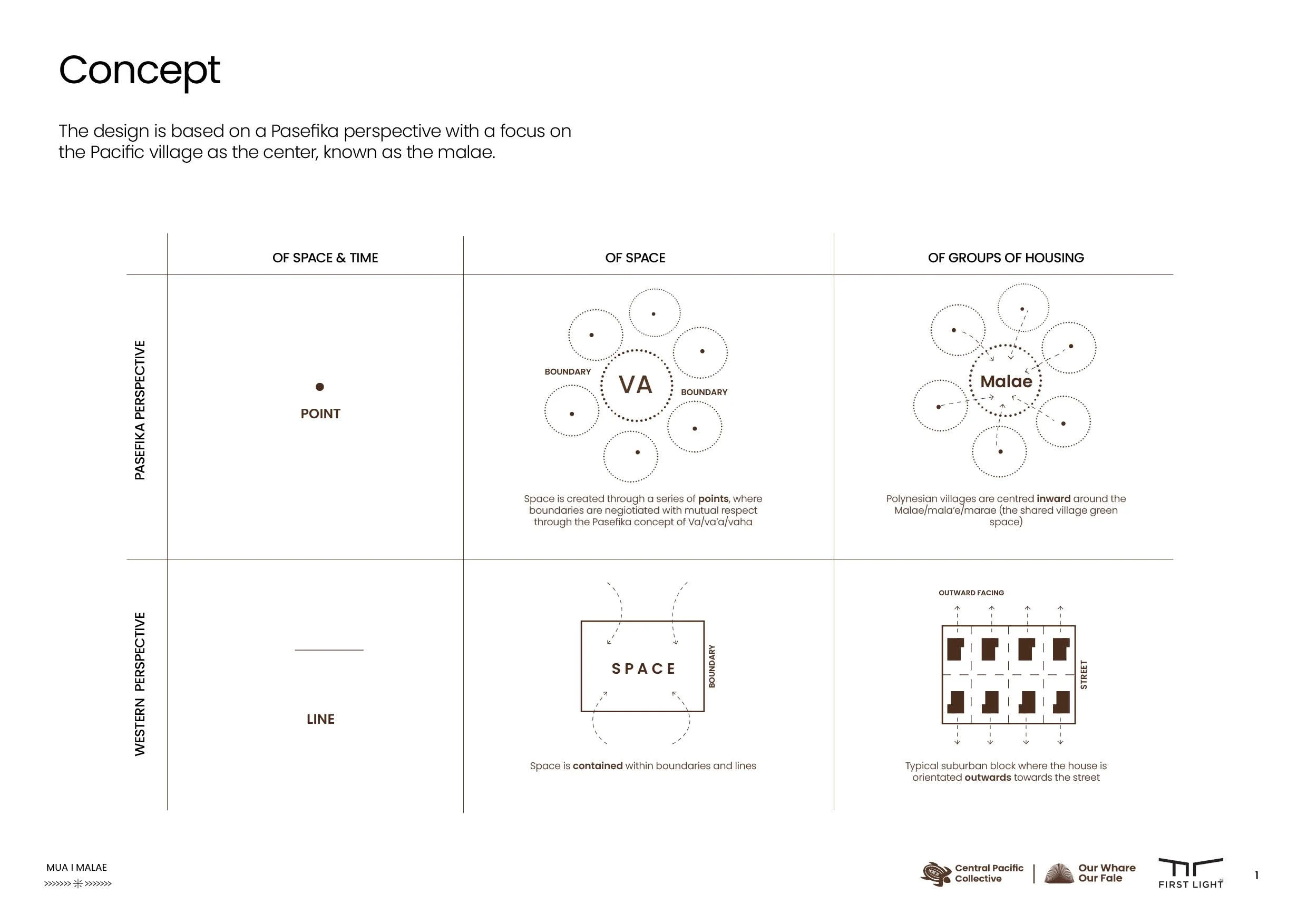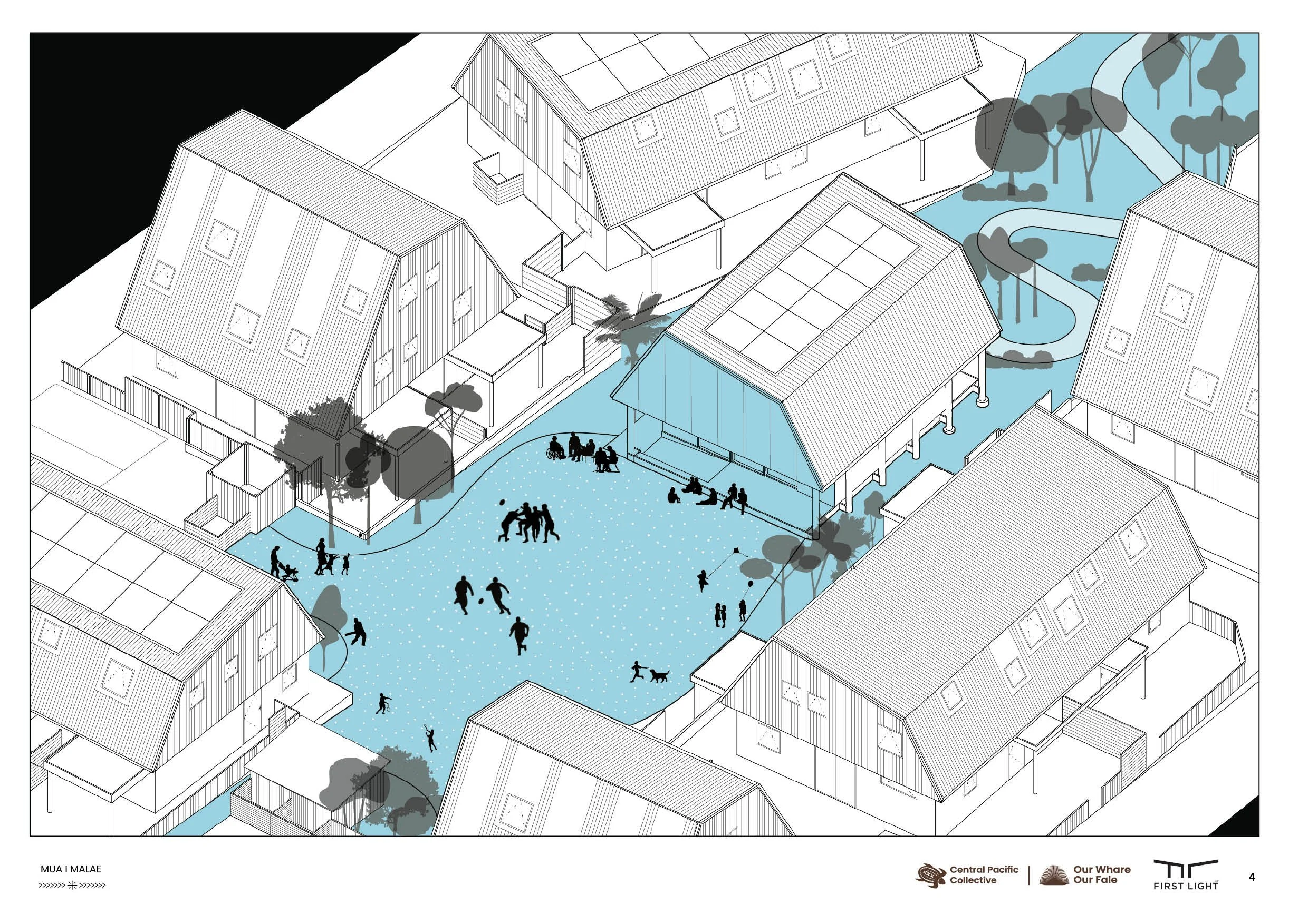 Our Whare Our Fale is the vision of reimagining the Pacific village in Aotearoa, transforming the life outcomes of the Pasefika community in Wellington through design that is by Pacific, for Pacific. The cultural force at the heart of the design makes it different to anything seen before. The central malae and common fale, express the principle of anoafale – it is not so much about the house, but the people living in the house and the relationships between them.