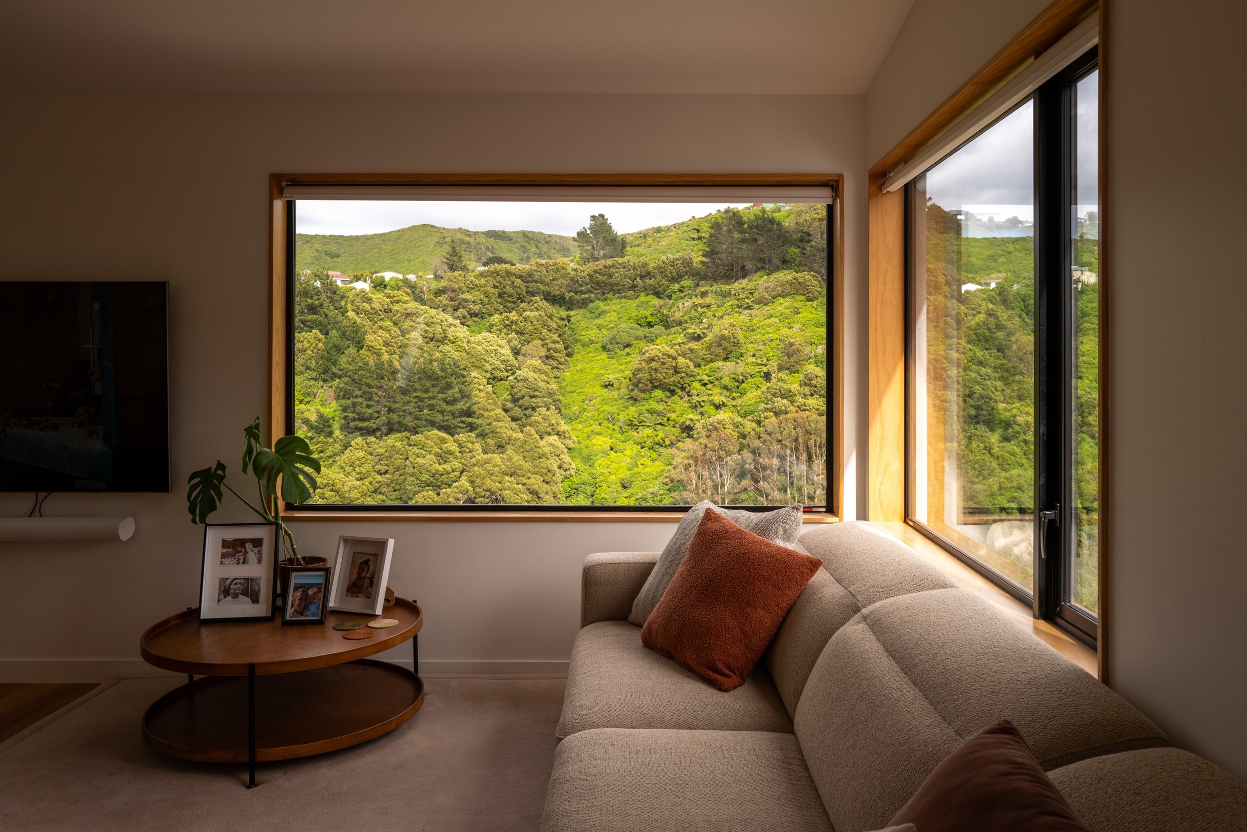 A chance visit to First Light Studio opened the path to this hillside site, long hidden at the top of the valley. First surveyed in the 1930s and left untouched ever since, the land sits in full northern sun with open views to native bush. Wind shaped and elevated, it offers both exposure and quiet.